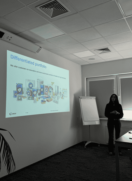 Kolejnym punktem wydarzenia było spotkanie z Continuous Improvement Managerem, podczas którego studenci poznali wybrane maszyny, cele oraz projekty realizowane w fabryce Amcor Flexibles Reflex. Uczestnicy mieli okazję zobaczyć, jak w praktyce wygląda proces ciągłego doskonalenia oraz jak nowoczesne rozwiązania wpływają na efektywność pracy zakładu.