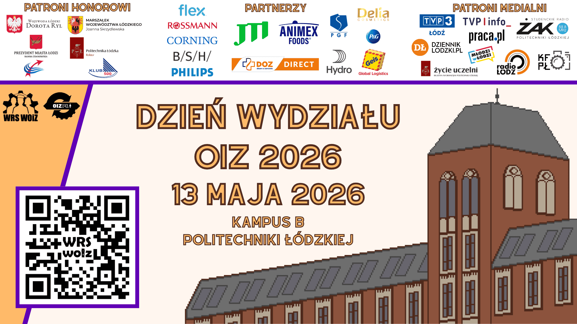 Wydziałowa Rada Samorządu Wydziału Organizacji i ZarządzaniaPolitechniki Łódzkiej zaprasza do udziału w wyjątkowym wydarzeniu „Dzień Wydziału OiZ 2026”, które odbędzie się 13 maja 2026 roku w godzinach 9:00 – 15:00 na terenie Kampusu B Politechniki Łódzkiej.