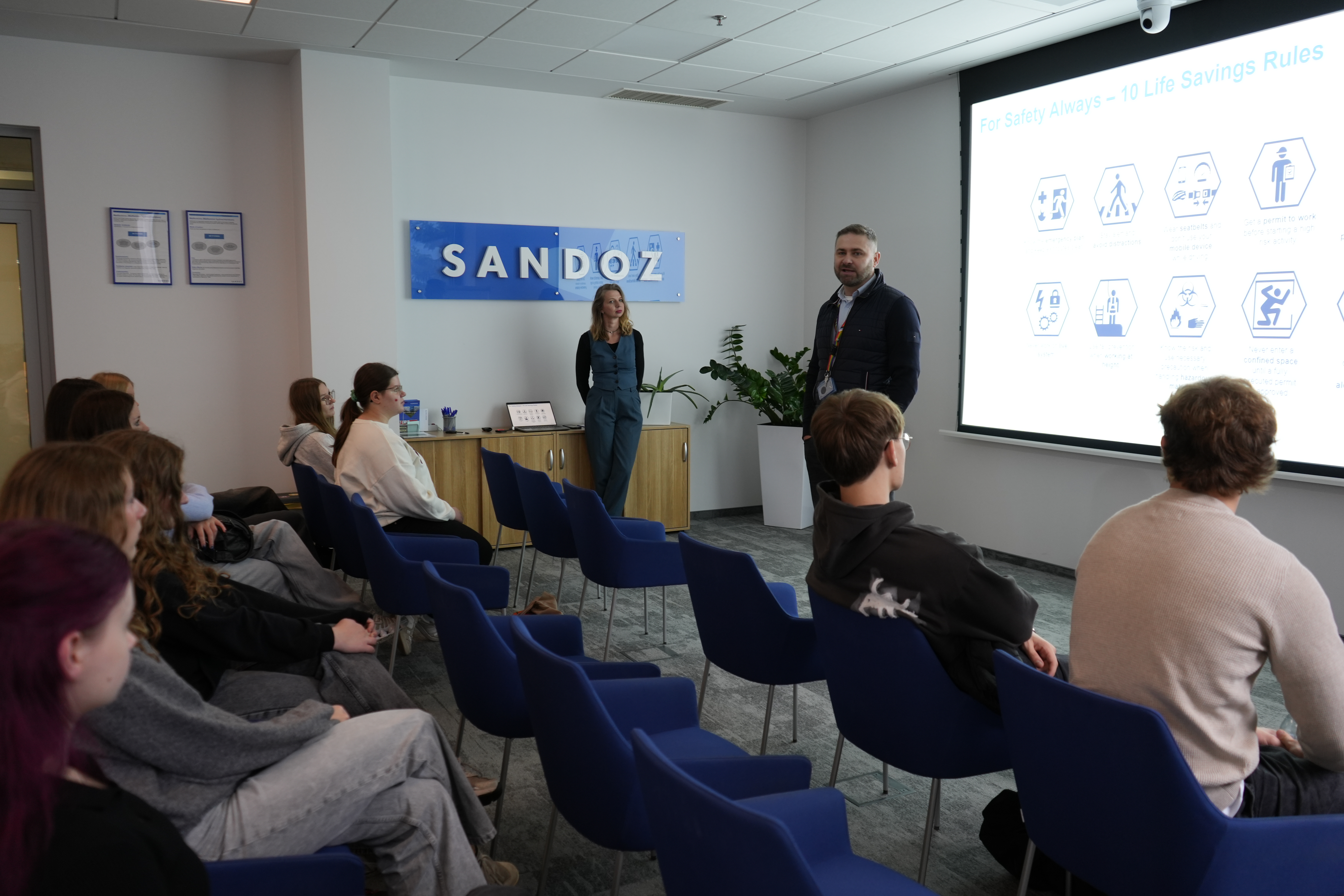 Nasi młodzi goście zajrzeli również za kulisy innowacyjnych firm z sektora life science Sandoz Global i Delia Cosmetics. Poza poznaniem specyfiki branży farmaceutycznej i kosmetycznej, odbyli mega interesujące wycieczki po zakładach oraz zobaczyli jak wygląda produkcja leków i kosmetyków. Był też czas na inspirujące rozmowy z pracownikami firm o ścieżkach kariery w branży.