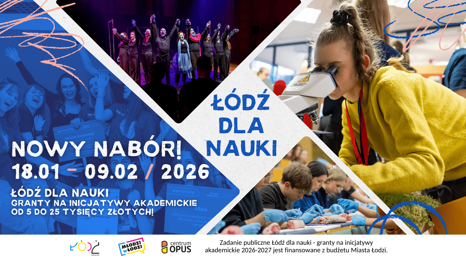 18 stycznia 2026 r. rozpoczął się nabór do konkursu grantowego „Łódź dla nauki – granty na inicjatywy akademickie”, który potrwa do 9 lutego br. Konkurs adresowany jest do organizacji pozarządowych oraz grup nieformalnych, w tym także do studenckich kół naukowych (minimum trzy osoby pełnoletnie) działających w obszarze akademickim.