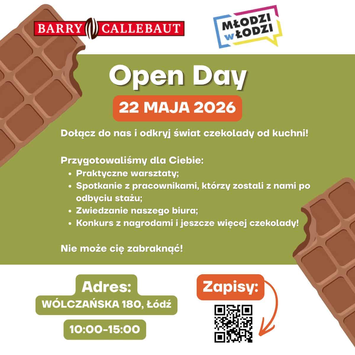 Dołącz 22 maja 2026r. i odkryj świat czekolady od kuchni! Barry Callebaut to globalny lider w produkcji najwyższej jakości wyrobów czekoladowych i kakaowych, z obecnością na ponad 40 rynkach na całym świecie. Biuro firmy w Łodzi to centrum operacji wspierających ten słodki biznes.