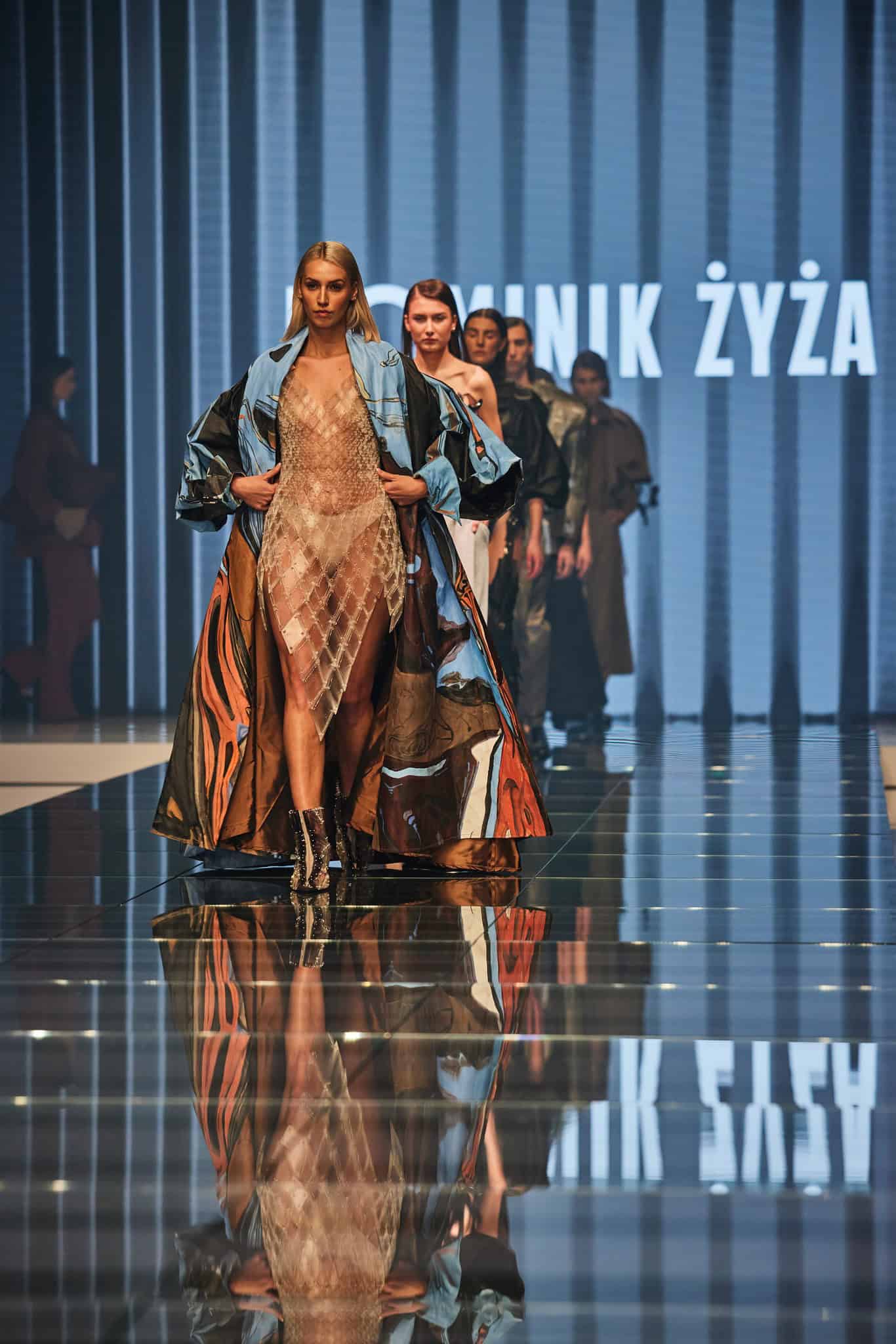 – Kolekcja „Ostatni zachód słońca” zachwyciła nas tym, jak projektant chce przekładać świat, który go otacza – architekturę, malarstwo, historię – na nowe formy, które są prowokujące i zabierają nas w podróż, także na wybiegu. Jej oryginalny temat, osadzony w lokalności, jest tu kluczowy. To łódzka historia, odwołująca się do modernistycznych idei miasta-maszyny czy kobiety-maszyny, która pracuje i tworzy, przywołując skojarzenia z mechanizmami tkackimi. Nie brakuje też odniesień do architektury Łodzi, jej secesyjnego charakteru, metaloplastycznych detali – podkreśla przewodnicząca jury, Karolina Sulej. – Dominik Żyża to projektant, który tworzy już jakiś czas – i zdecydowanie nie jest to gwiazda jednej kolekcji, tylko twórca, który konsekwentnie rozwija własny język, nie boi się eksperymentować i poszukiwać. To także projektant, którego prace są głęboko osadzone w polskim kontekście, ale nie w sposób oczywisty czy patriotyczny – to raczej ktoś, kto czerpie z tego kontekstu na wielu poziomach – dodaje.