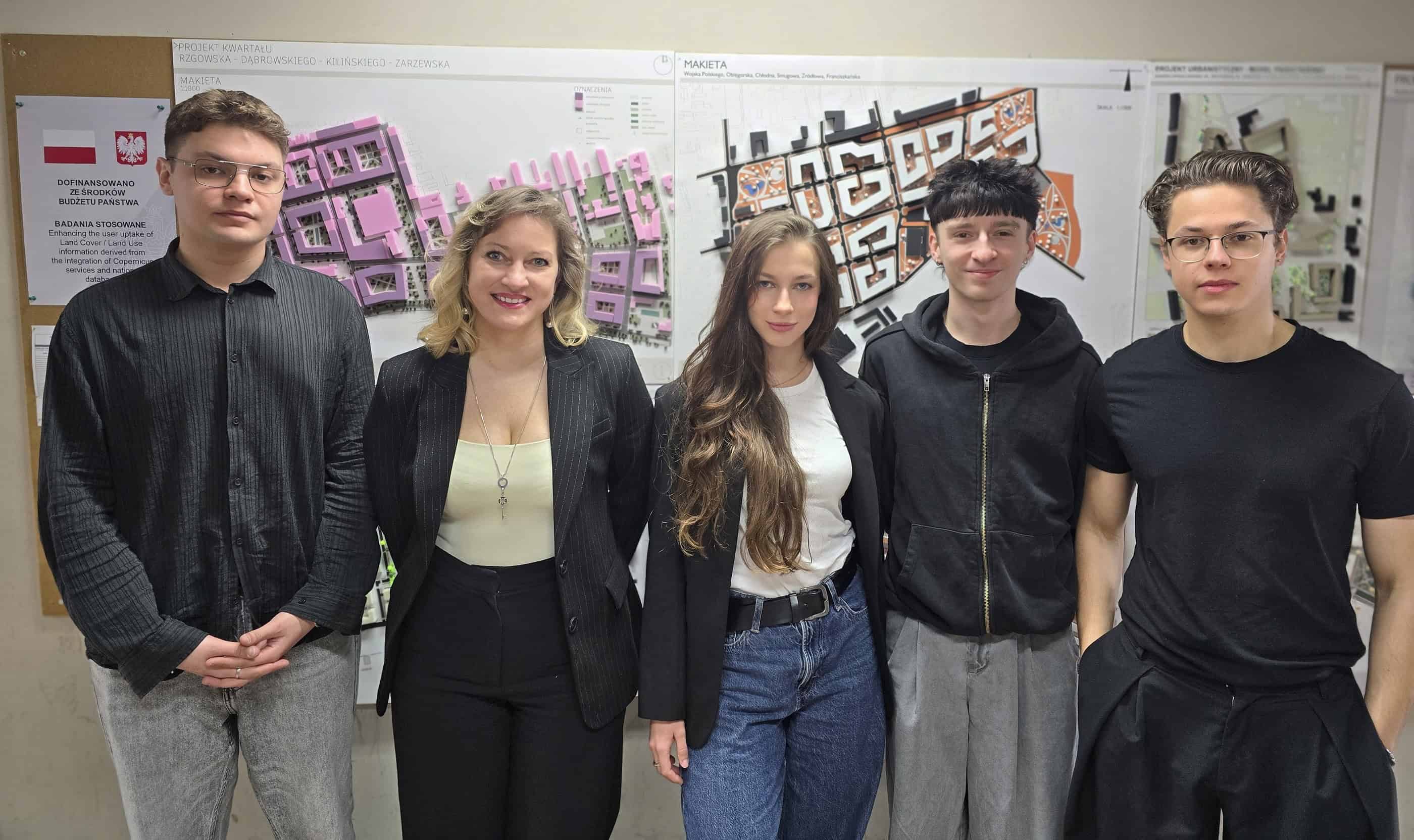 Na zdjęciu od lewej: inż. arch. Mateusz Bajer, dr inż. arch. Adriana Cieślak-Arkuszewska, inż. arch. Kamila Berbeć, inż. arch. Adam Dębny oraz inż. arch. Tomasz Pietrzak