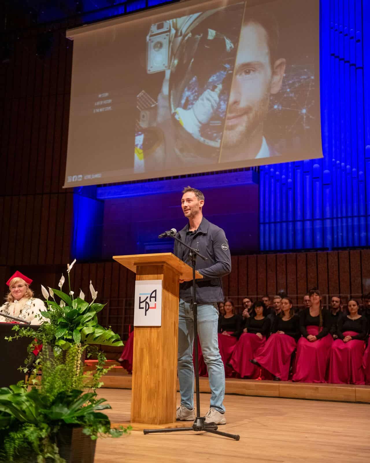 Następnie odbyła się immatrykulacja 12 nowo przyjętych studentów i 5 doktorantów z poszczególnych łódzkich uczelni. Wykład inauguracyjny zatytułowany „Nowe spojrzenie na naszą planetę: od załogowych lotów kosmicznych do obserwacji Ziemi” wygłosił dr inż. Sławosz Uznański, który już rozpoczął przygotowania do wyprawy w kosmos, planowanej jest na drugą połowę 2024 roku.