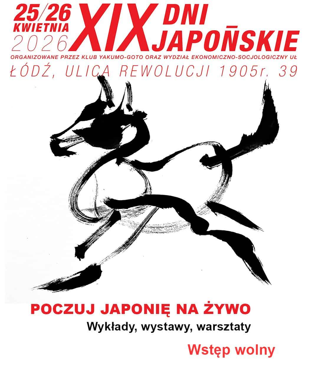 Zapraszamy na XIX Dni Japońskie na Uniwersytecie Łódzkim organizowane przez Klub Yakumo-goto i Wydział Ekonomiczno-Socjologiczny Uniwersytet Łódzki w dniach 25-26 kwietnia 2026 r.