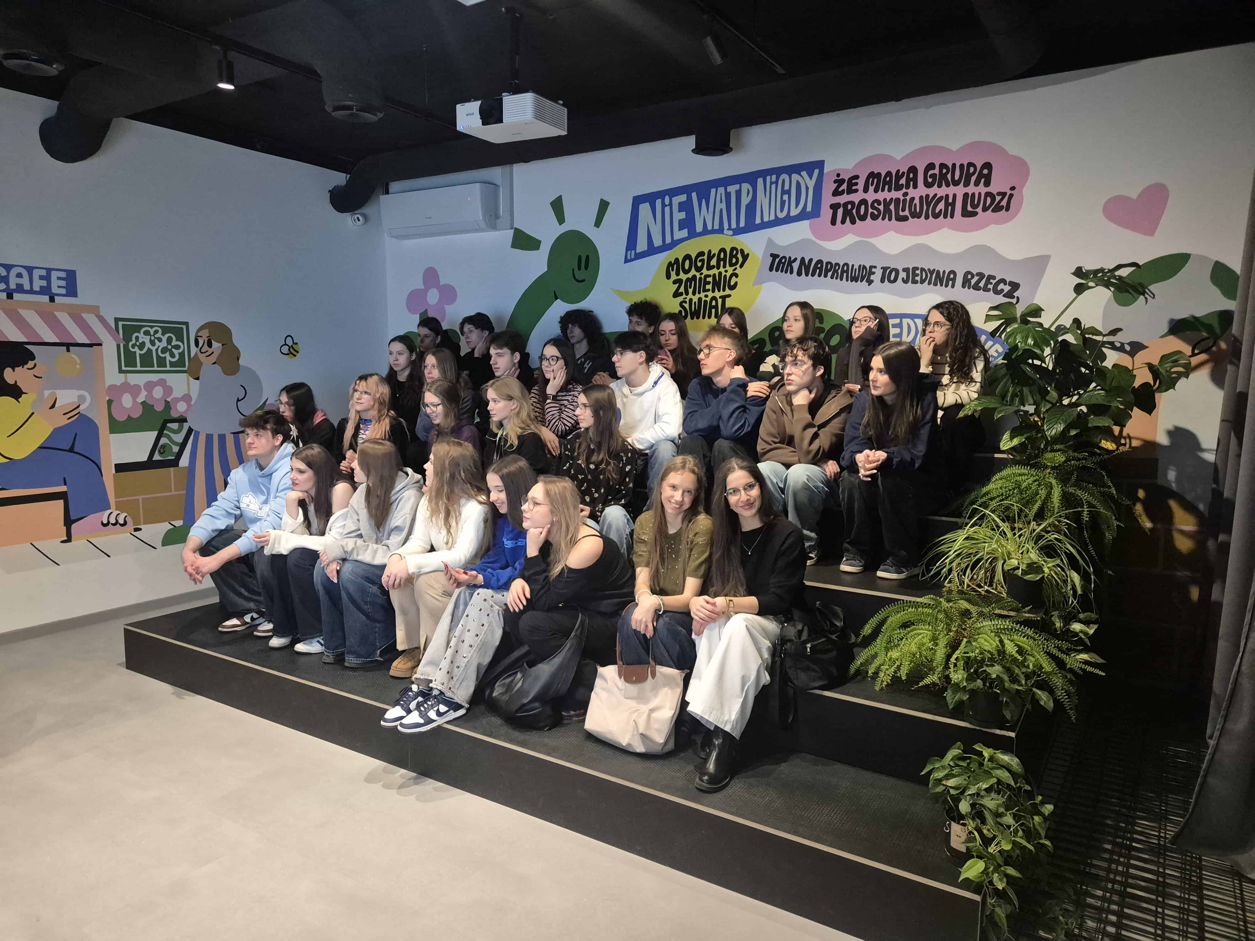 Po intensywnej części edukacyjnej przyszedł czas na kulturę, młodzież odwiedziła OFF Piotrkowską, gdzie uczestniczyła w spektaklu improwizowanym w Teatrze IMPRO – dawka śmiechu i dobrej energii była idealnym zwieńczeniem dnia.