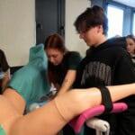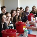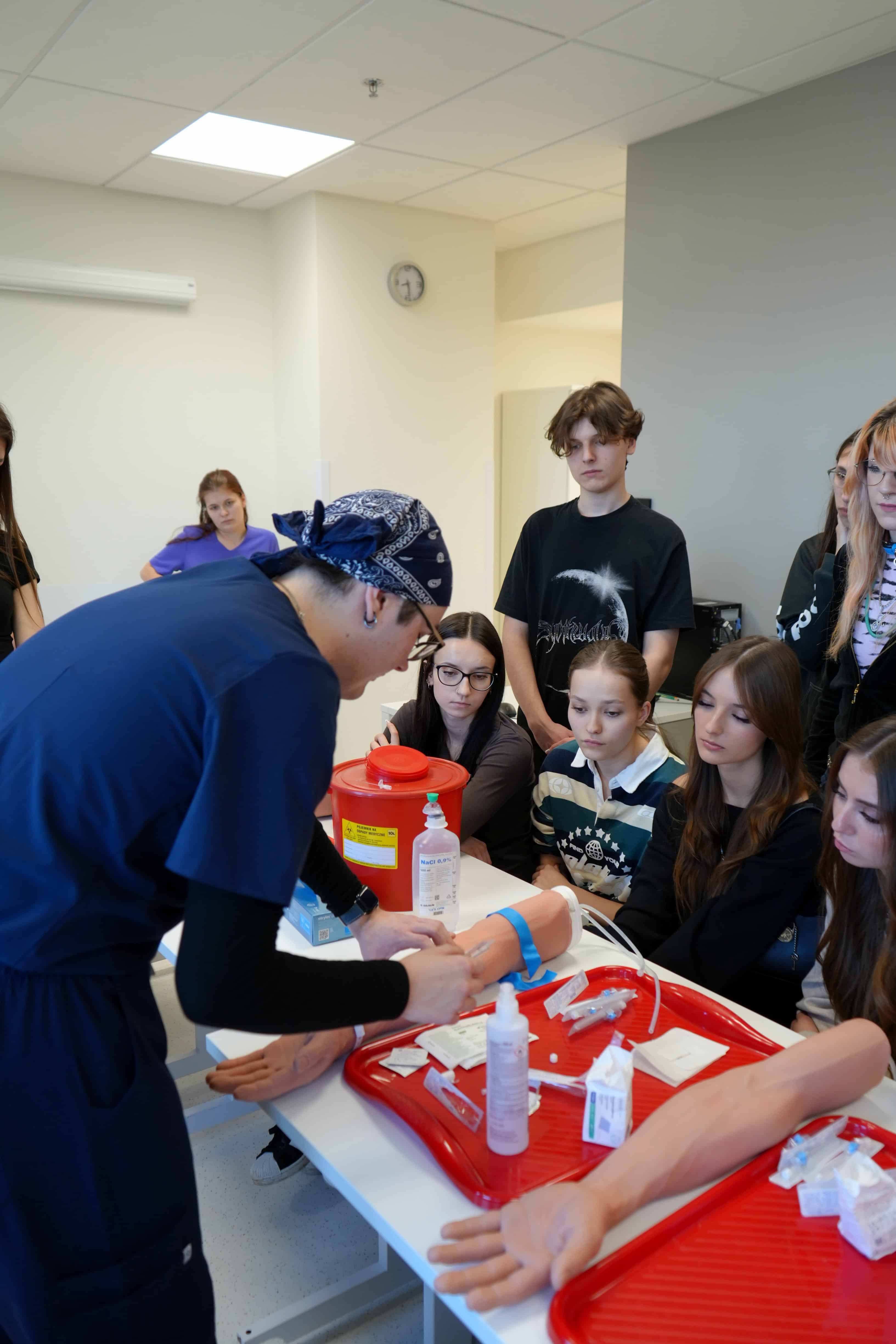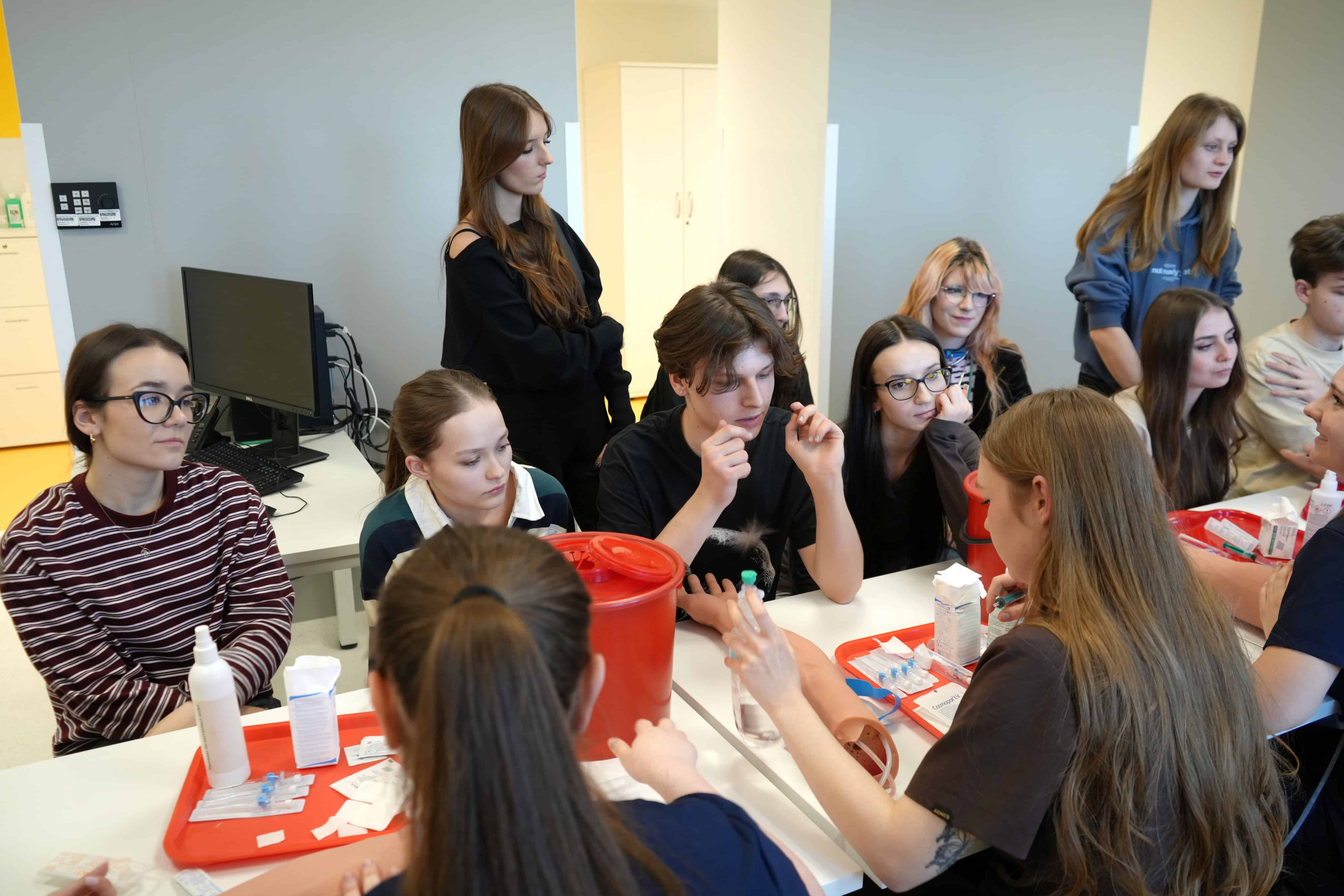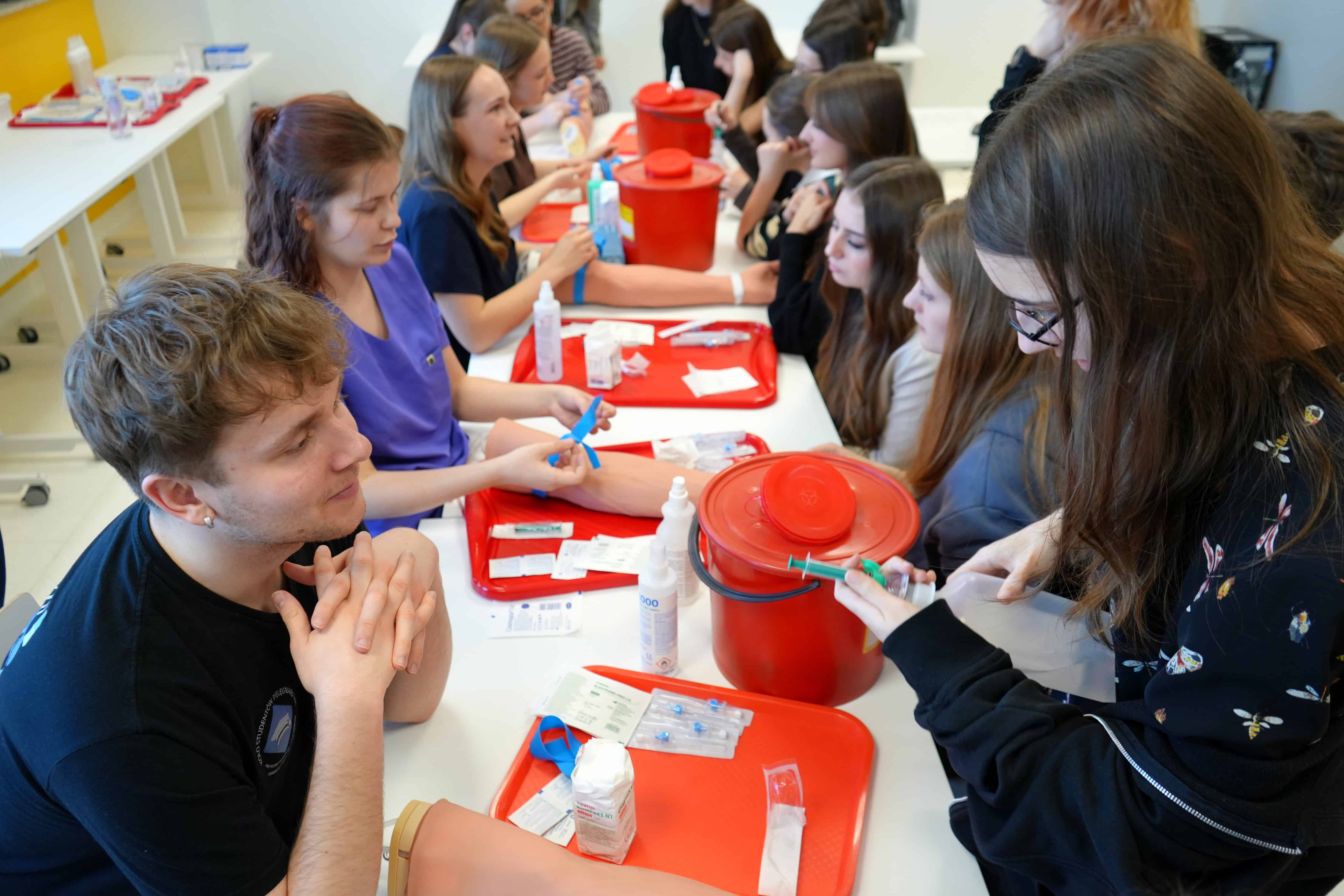W ostatni weekend odwiedzili nas uczniowie III LO im. Dionizego Czachowskiego, IV LO im. Tytusa Chałubińskiego i VI LO im. Jana Kochanowskiego z Radomia zainteresowani studiami medycznymi i pokrewnymi. Uczestnicy akcji „Zasmakuj studiowania w Łodzi” zajrzeli „od środka” do świata studiów medycznych eksplorując przestrzenie Uniwersytetu Medycznego w Łodzi w Centrum Kliniczno-Dydaktycznym, gdzie zobaczyli, jak wygląda nauka przyszłych lekarzy oraz specjalistów branży medycznej. W Centrum Symulacji Medycznych wzięli udział w zajęciach prowadzonych przez studentów od symulacji porodów, przez naukę szycia chirurgicznego aż po zajęcia z kaniulacji dożylnej. To była prawdziwa lekcja medycyny w praktyce!